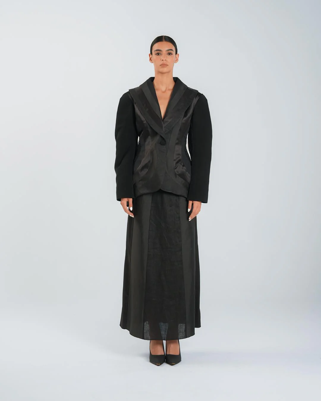 A powerful and versatile skirt that fuses femininity with strength.