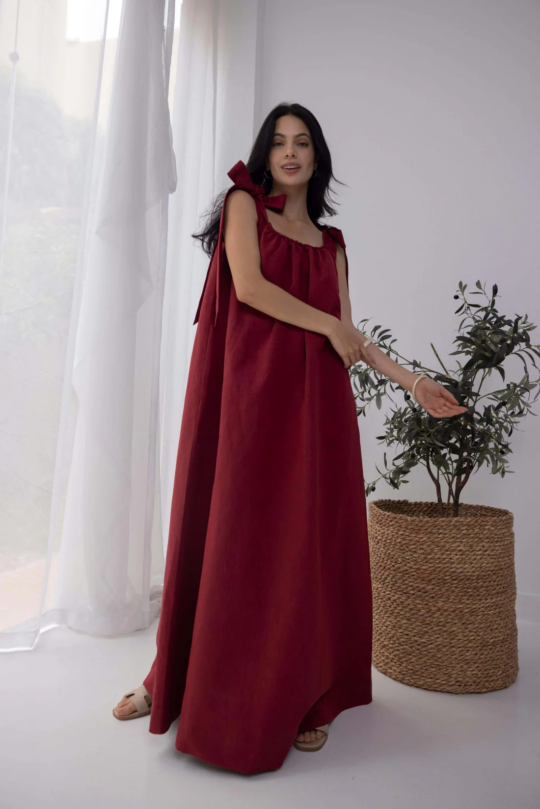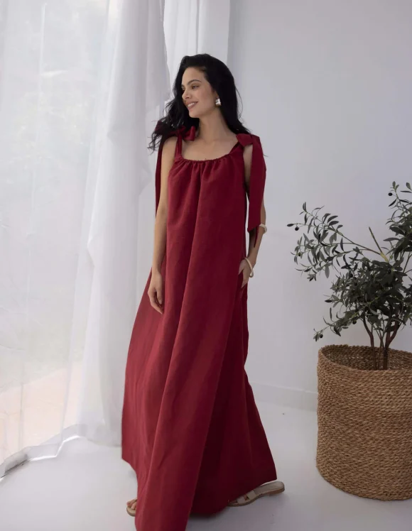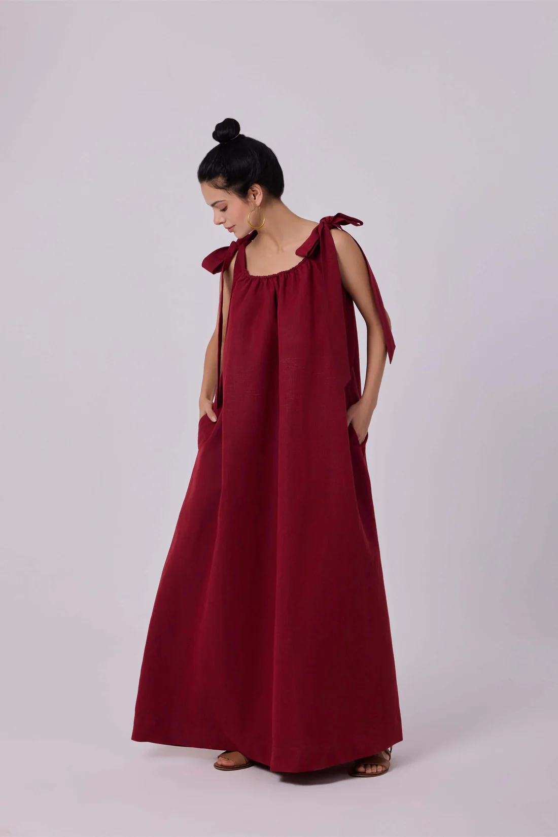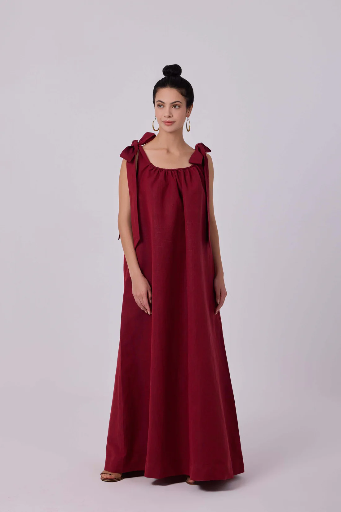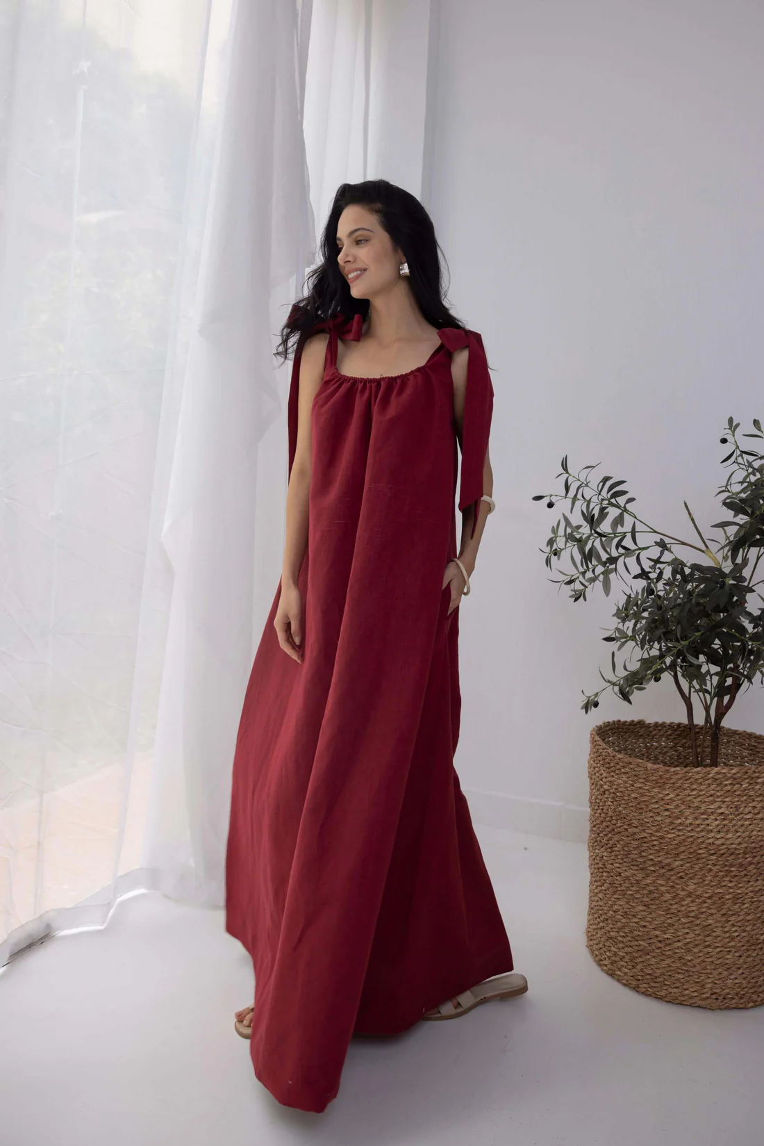 Timeless and statuesque, the Nadia Maxi Dress blends ease with elegance in a flowing, full-length silhouette. Crafted from a natural linen-rich fabric with a gently structured drape, it features wide adjustable tie straps and a softly gathered neckline for a feminine, refined shape. Cut generously with side pockets for effortless practicality, the Nadia dress is your go-to for summer days, slow evenings, and everything in between.