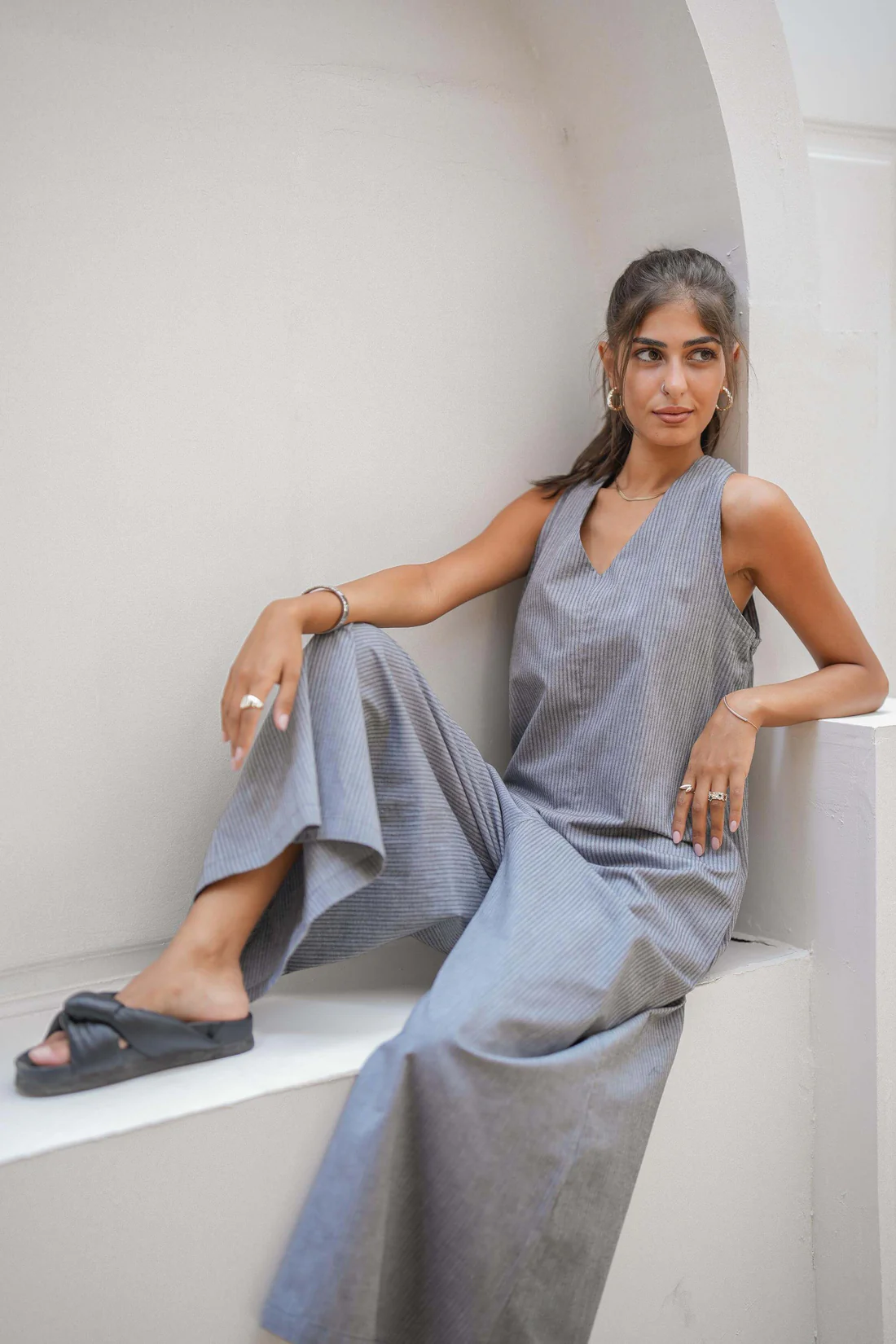 Step into effortless elegance with this one-and-done jumpsuit. Designed for style and comfort, it’s made from ultra-soft, breathable cotton with wide legs and practical side pockets. The adjustable neck straps offer a customizable fit, while the relaxed silhouette moves with you—polished yet effortlessly chic. Dress it up or keep it casual—your go-to piece for any occasion