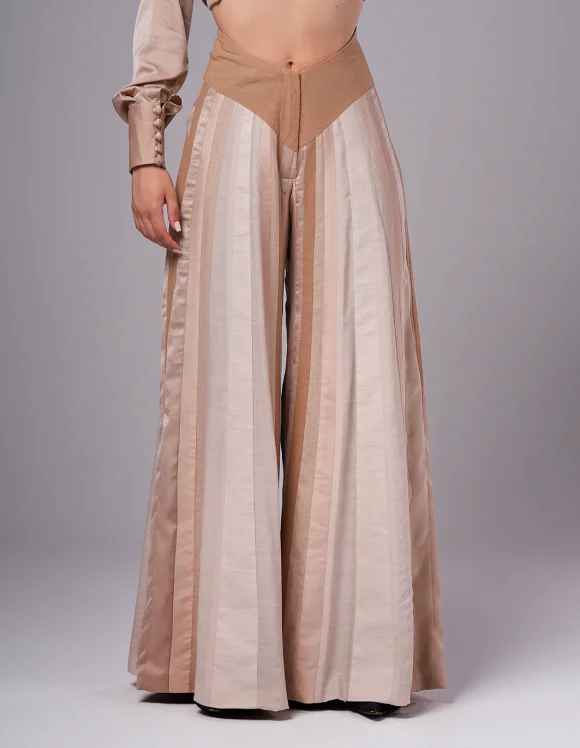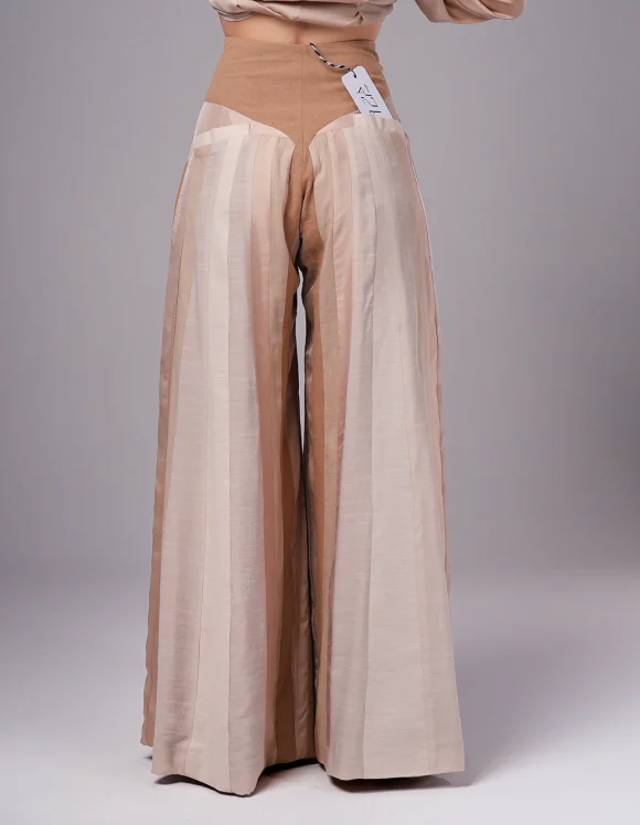 The Nude Panelled Pants are crafted from a luxurious blend of taffeta, crepe, linen, and cotton, and fully lined with silk for a smooth, refined finish. Designed with an A-line silhouette and our signature V-shaped waist, they softly cinch the waist for a flattering, feminine fit.